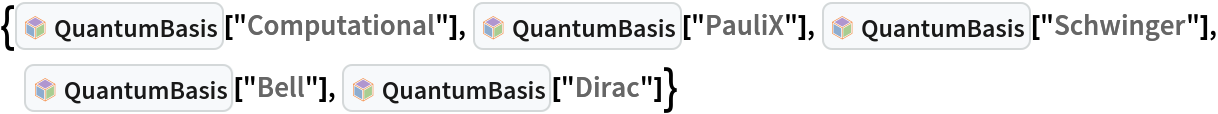 There are many 'named' bases built into the quantum framework, including "Computational", "PauliX", "PauliY", "PauliZ", "Fourier", "Identity", "Schwinger", "Pauli", "Dirac" and "Wigner" bases: