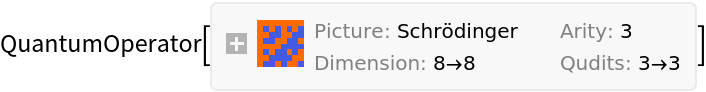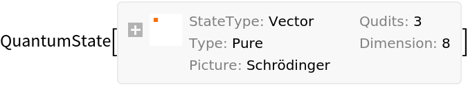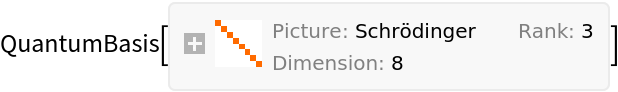 Use QuantumBasis[n,m] to define a basis for qudits of dimension (for which the overall dimension will be ). For example, define a 2–2–2 dimensional quantum basis (with three qubits):