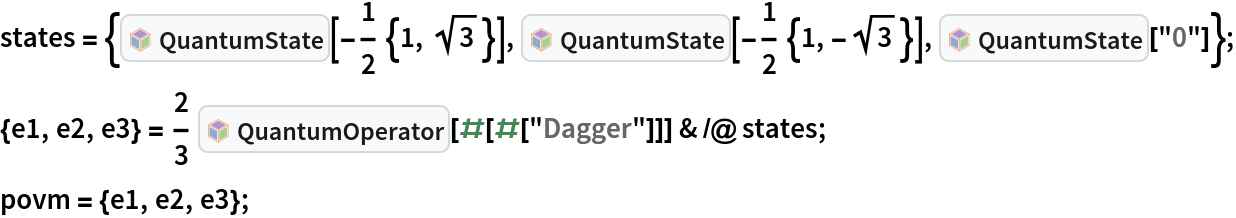 For example, define a measurement operator with a "named" QuantumBasis (as an eigenbasis) and a list of eigenvalues: