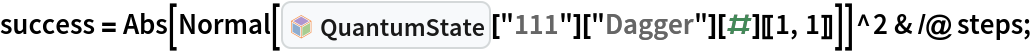 Calculate the success probability after each iteration (note 111 is the solution of the Boolean function):