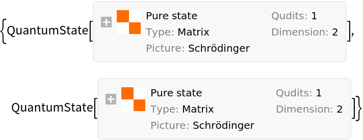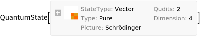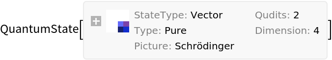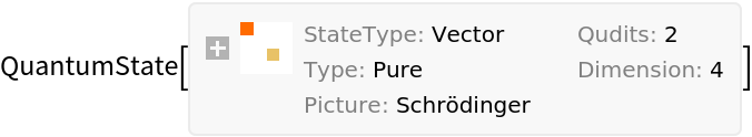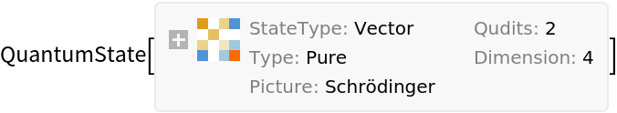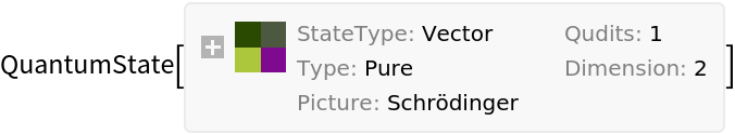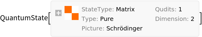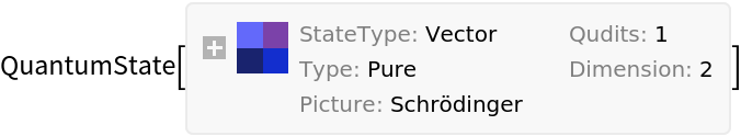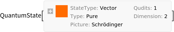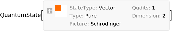 A pure quantum state is represented as a vector for which the elements are amplitudes. The corresponding basis should be given in this format: QuantumState[arg1,arg2], where arg1 specifies amplitudes or the density matrix, and arg2 specifies the basis. With no basis specified, the default basis will be the computational basis, the dimension of which depends on the amplitude vector given in arg1.