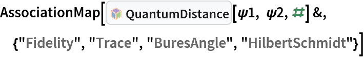 In quantum information, there exist notions of distance between quantum states, such as fidelity, trace distance, Bures angle, etc. One can use QuantumDistance to compute the distance between two quantum states with various metrics.