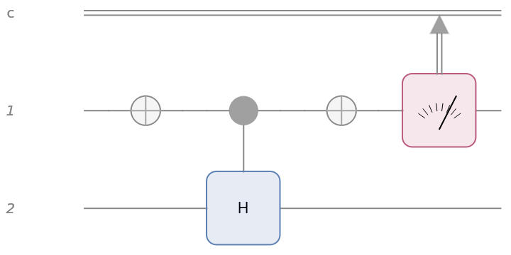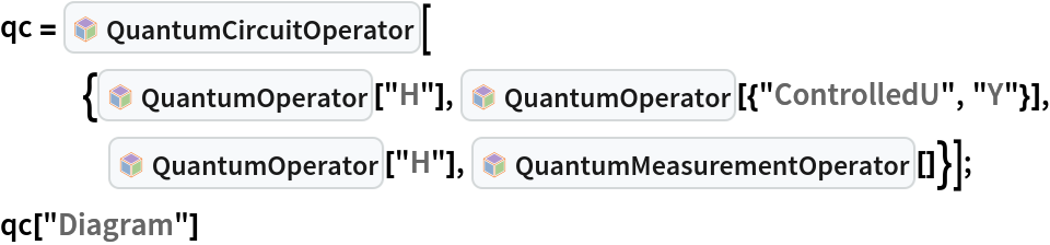 Measurement operators can also be added to a quantum circuit. For a single-qubit unitary operator with eigenvalues ±1, a measurement of can be implemented in the following circuit. (Note that here, Pauli-Y is considered a operator):