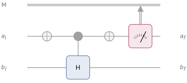 The state to be teleported is =α+β, where α and β are unknown amplitudes. The input state of the circuit is as follows: