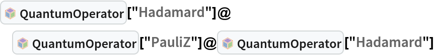 One can also compose operators. Here's a composition of two Hadamard operators and one Pauli-Z operator:
