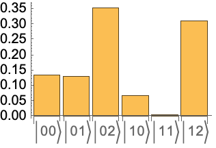 Use QuantumBasis[{n1,n2,…,nm}] to define an -dimensional Hilbert space of qudits as a list. For example, define a 3×5 dimensional quantum basis (with two qudits):