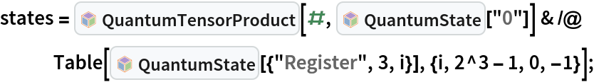 Create a superposition of 3 qubits (i.e., QuantumBasis[2,3]) as