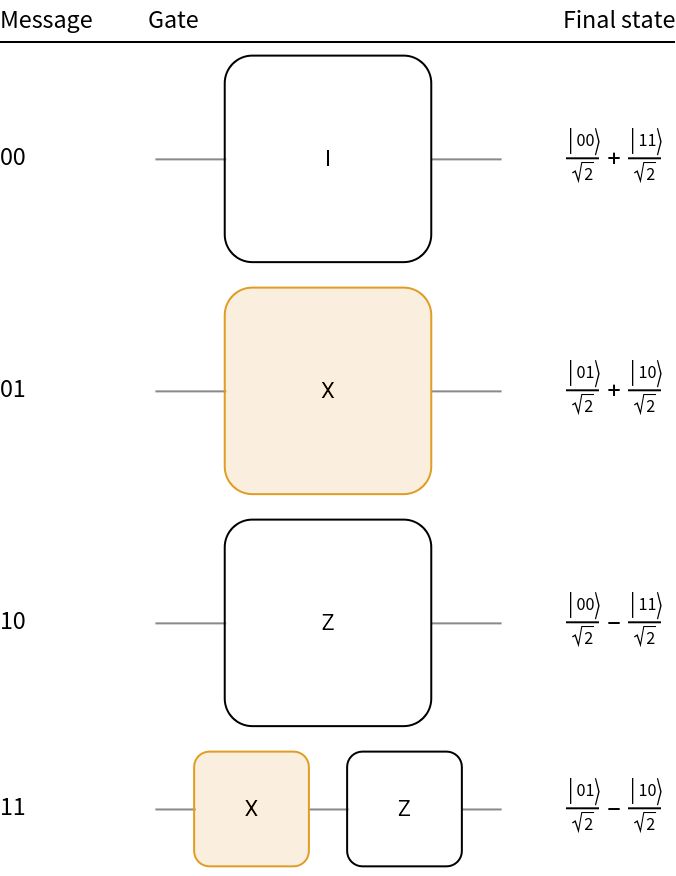 4. To send 11, she applies the X-gate and then the Z-gate.
