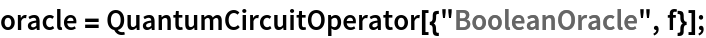 The action of a Boolean oracle is defined by this transformation: → with the index register state of n-qubits, and the state of an ancillary qubit carrying the result of the Boolean function f(x); meaning if =, then it will be if x is a solution of f(x), and unchanged if it is not.
