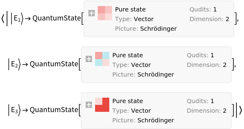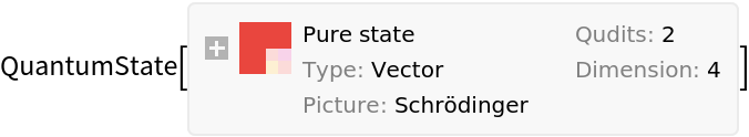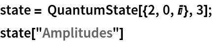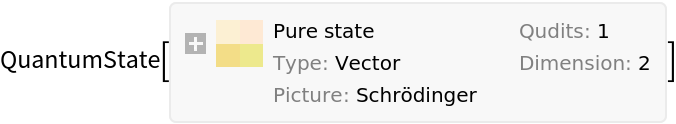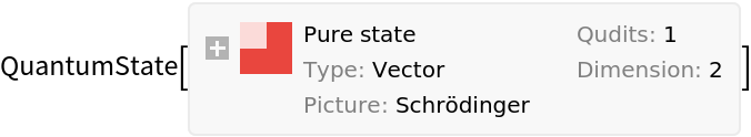 A pure quantum state is represented as a vector for which the elements are amplitudes. The corresponding basis should be given in this format: QuantumState[arg1,arg2], where arg1 specifies amplitudes or the density matrix, and arg2 specifies the basis. With no basis specified, the default basis will be the computational basis, the dimension of which depends on the amplitude vector given in arg1.