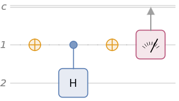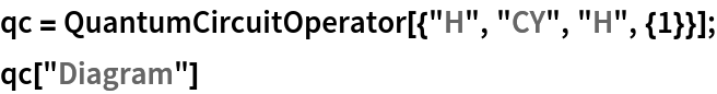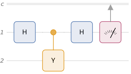 Measurement operators can also be added to a quantum circuit. For a single-qubit unitary operator with eigenvalues ±1, a measurement of can be implemented in the following circuit (note that here, Pauli-Y is considered a operator):