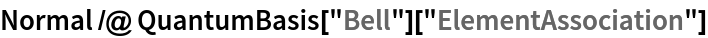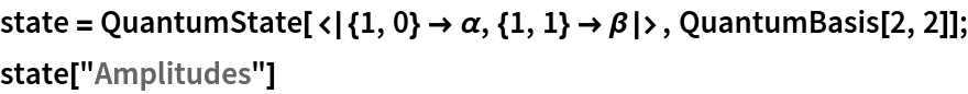 With a built-in basis specified, amplitudes correspond to the basis elements. For example, use the Bell basis: