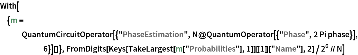 Estimate the phase (the expected value is 1/5=0.2) for n=6: