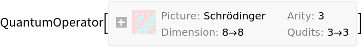 Use QuantumBasis[n,m] to define a basis for m qudits of dimension n (for which the overall dimension will be ). For example, define a 2×2×2-dimensional quantum basis (with three qubits):