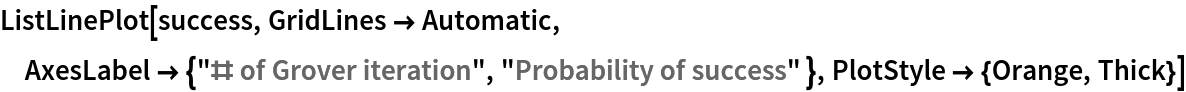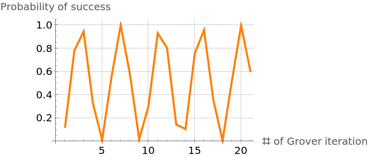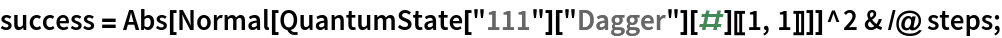 Calculate the success probability after each iteration (note 111 is the solution of the Boolean function):