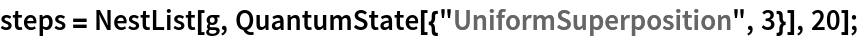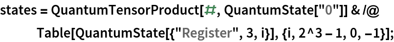 Create a superposition of 3 qubits (i.e. QuantumBasis[2,3] as