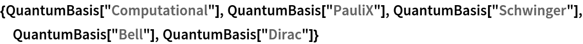 There are many 'named' bases built into the quantum framework, including "Computational", "PauliX", "PauliY", "PauliZ", "Fourier", "Identity", "Schwinger", "Pauli", "Dirac" and "Wigner":