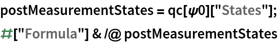 Given the result of Alice's measurement on the first and second qubits, get the post-measurement states: