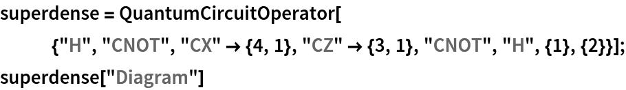 One can also compose operators. Here is a composition of two Hadamard operators and one Pauli-Z operator: