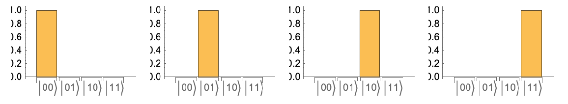 Such operations can be represented as circuits, each with a final state resulting from application of its respective gate(s) to the initial Bell state: