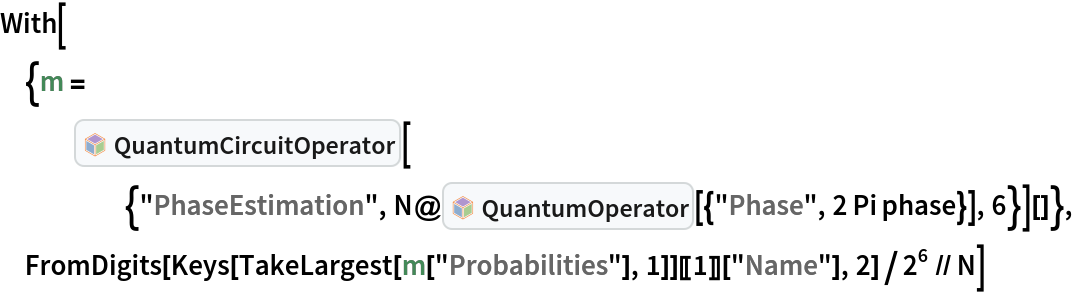 The quantum phase estimation algorithm solves the problem of finding in the eigenvalue equation = , where is a unitary operator. The inputs of the algorithm are qubits at the initial state