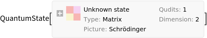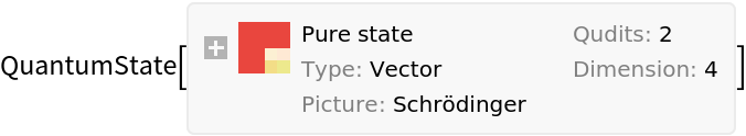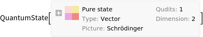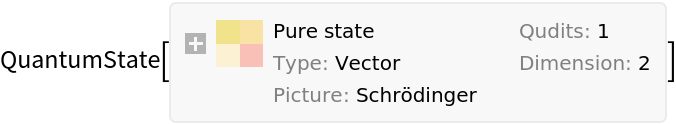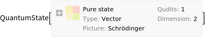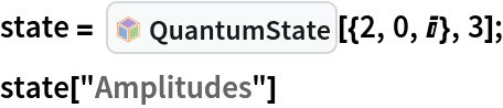 A pure quantum state is represented as a vector for which the elements are amplitudes. The corresponding basis should be given in this format: QuantumState[arg1,arg2], where arg1 specifies amplitudes or the density matrix, and arg2 specifies the basis. With no basis specified, the default basis will be the computational basis, the dimension of which depends on the amplitude vector given in arg1.