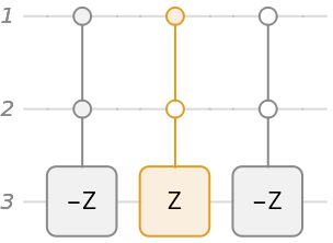 Note that the big endian convention is in use, such that qubits are labeled left-to-right, starting with 1. For example, the decimal representation of (which means ⊗⊗3) is . Additionally, for the eigenvalues of Pauli-Z, there is: