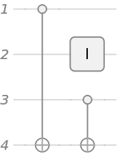 Define an initial state as , where is the code that Alice wants to send Bob, which is encoded in two ancillary qubits (qubits 3 and 4).