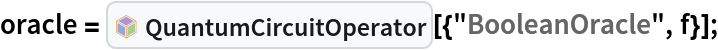 The action of a Boolean oracle is defined by this transformation: → with the index register state of n-qubits, and the state of an ancillary qubit carrying the result of the Boolean function f(x); meaning if =, then it will be if x is a solution of f(x), and unchanged if it is not.