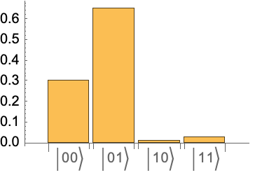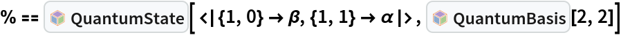 With a built-in basis specified, amplitudes correspond to the basis elements. For example, use the Bell basis: