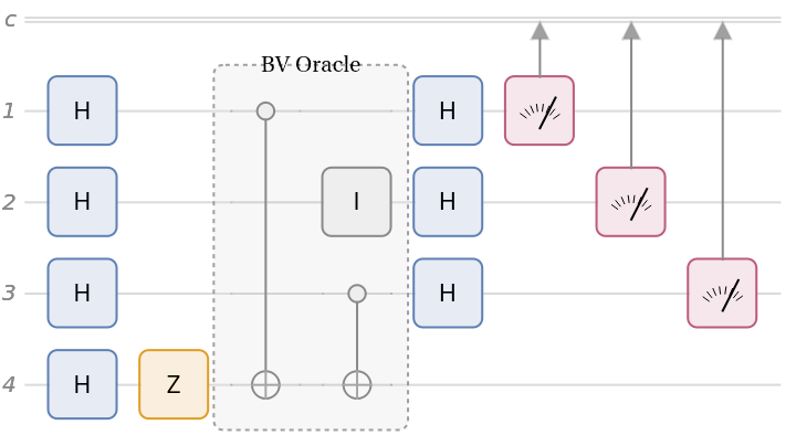 The goal of the Bernstein–Vazirani algorithm is to find a secret string bit as s using the action of a Bernstein–Vazirani oracle (i.e. which should be treated as a black box), which is defined by this transformation: → with the index register state of n-qubits, and the state of an ancillary qubit carrying the result.