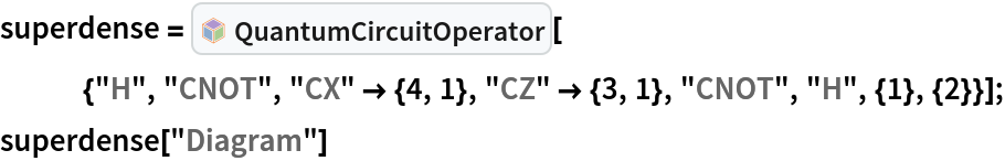 Define an initial state as , where is the code that Alice wants to send Bob, which is encoded in two ancillary qubits (qubits 3 and 4).