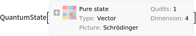 A pure quantum state is represented as a vector for which the elements are amplitudes. The corresponding basis should be given in this format: QuantumState[arg1,arg2], where arg1 specifies amplitudes or the density matrix, and arg2 specifies the basis. With no basis specified, the default basis will be the computational basis, the dimension of which depends on the amplitude vector given in arg1.