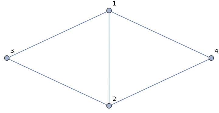 Create a graph of 4 vertexes and 5 edges: