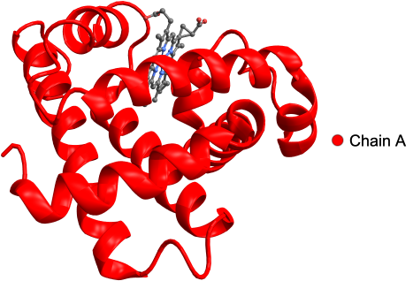 Visualize the ribbon diagram of the structure of myoglobin, the first reported x-ray structure of a protein: