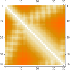 Compute the distance matrix of structure of Avian pancreatic polypeptide: Small globular protein hormone: